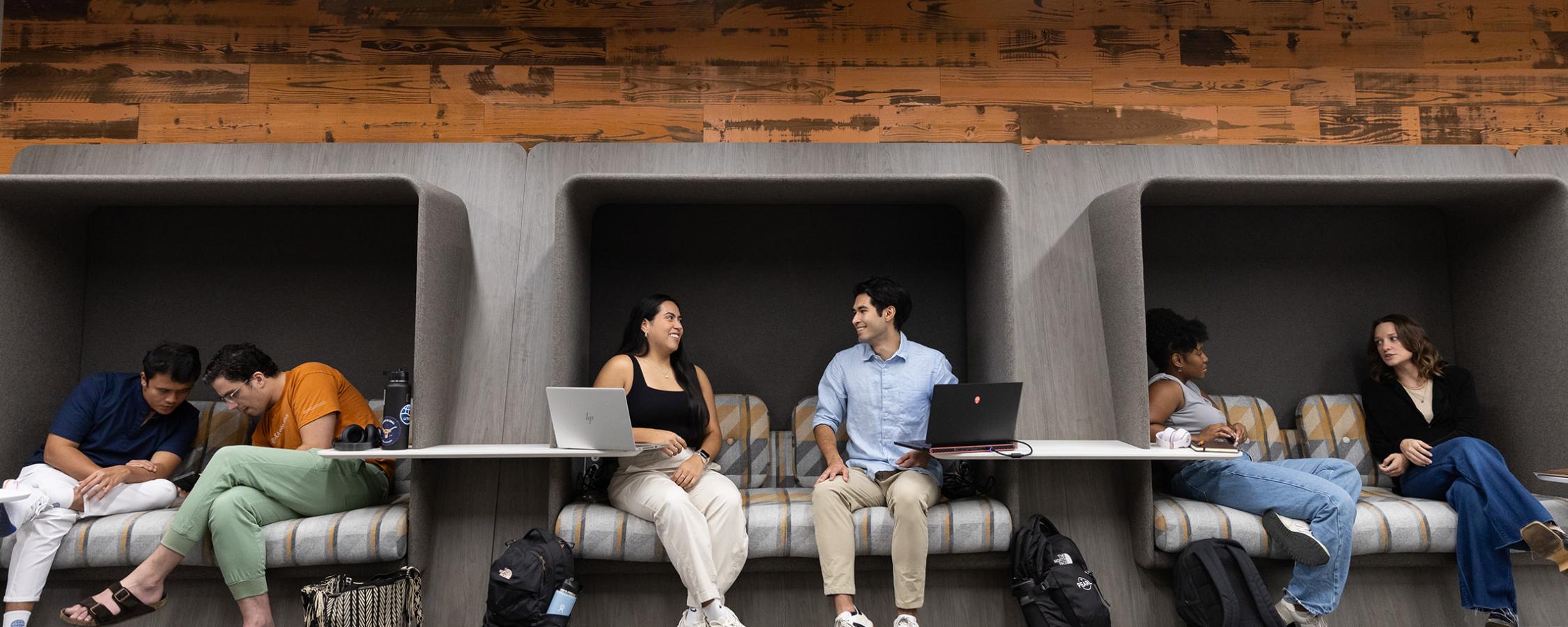 students sitting and talking together in workspaces